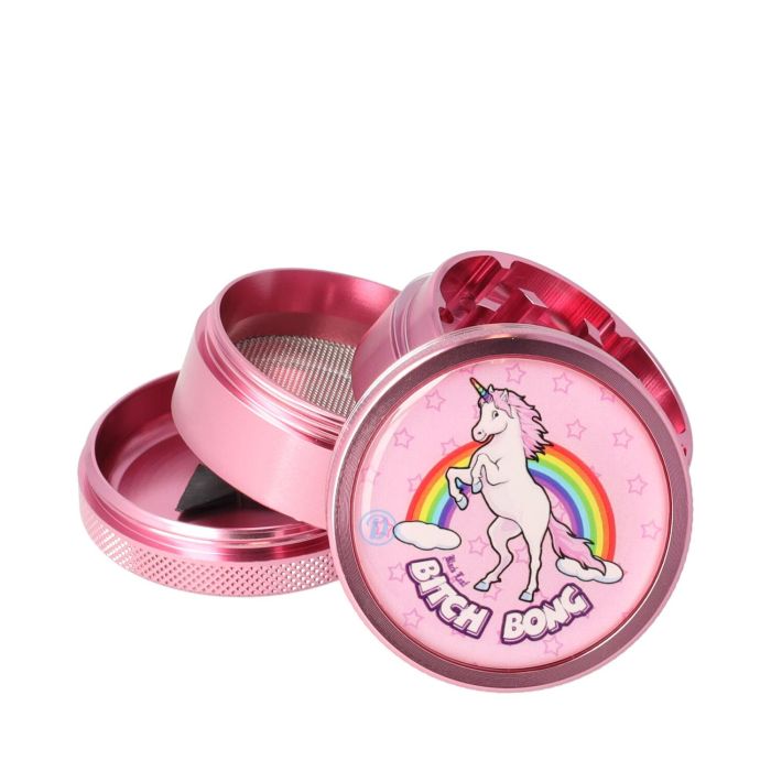 Entdecken Sie die Magie des Black Leaf Bitch Bong Grinder, ein Meisterwerk beim Zerkleinern von Kräutern. Mit seiner kräftig pinkfarbenen Farbe und dem auffälligen "Bitch Bong"-Motiv ist dieser Grinder nicht nur ein praktisches Werkzeug, sondern auch ein auffälliges Accessoire. Inspiriert von der verspielten Kraft von Einhörnern und Regenbogen verkörpert dieser 4-teilige Grinder die Freiheit und Freude am Leben.