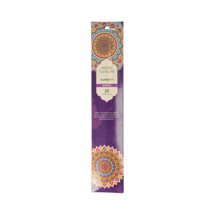 Jede Packung enthält 20 langsam brennende Räucherstäbchen, die einen sanften Duft verbreiten, der an einen ruhigen Teich voller blühender Lotuspflanzen erinnert. Perfekt für Meditation, Yoga oder einfach um einen Moment der Stille ins Haus zu bringen. Indian Folklore Kamal ist eine Hommage an Einfachheit und Ausgewogenheit.