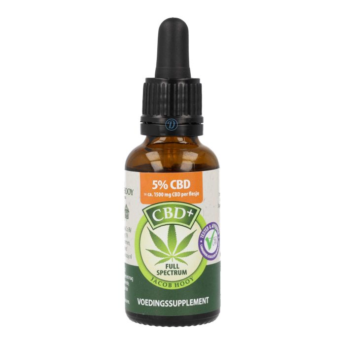 Die Jacob Hooy CBD-Öl 5% enthält 50 mg Cannabidiol pro Milliliter Öl. In einer 10-ml-Flasche bedeutet dies, dass insgesamt 500 mg CBD im Öl enthalten sind. Dieses CBD-Öl ist sogenanntes Raw CBD. Das bedeutet, dass eine kalte Extraktionsmethode verwendet wurde. Dadurch sind viele der natürlicherweise vorkommenden Stoffe noch im endgültigen Öl vorhanden. Ein Raw CBD wird auch als Full-Spectrum bezeichnet.
