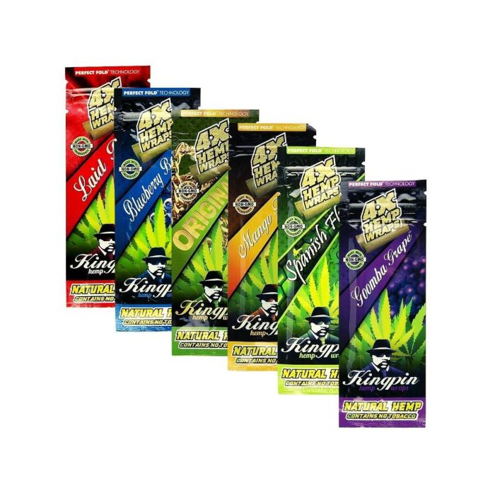 Die verschiedenen Geschmacksrichtungen der Kingpin Hemp Wraps