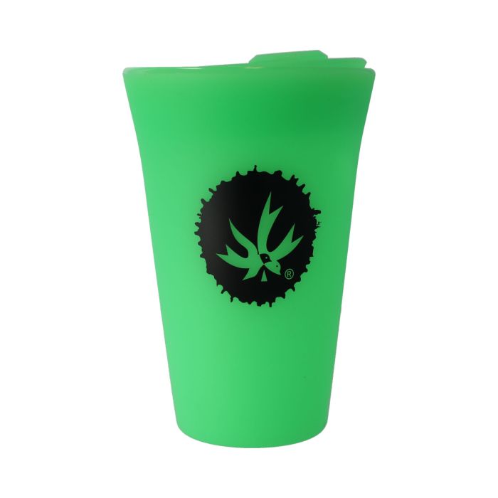 Hergestellt aus hochwertigem, bruchsicherem Silikon, ist der Kommuter perfekt für Abenteurer. Der abnehmbare Deckel passt auf den mitgelieferten SiliPint-Becher, ist aber auch kompatibel mit den meisten Standard-Trinkbechern wie Solo- oder Fast-Food-Bechern, so dass Sie praktisch jeden Becher in eine Wasserpfeife verwandeln können. Die Green Glow-Variante leuchtet im Dunkeln und sorgt für ein auffälliges und einzigartiges Aussehen.