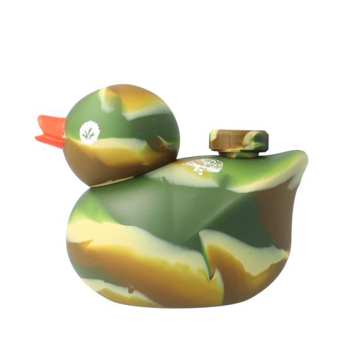 Machen Sie sich mit dem PieceMaker Kwack Kamo vertraut - Ihr neuer, verspielter Rauchkamerad! Diese Wasserpfeife, gestaltet wie eine Gummiente mit Tarnmuster, besteht aus hochwertigem, BPA-freiem Silikon und verfügt über eine Edelstahlschüssel mit integriertem Sieb. Dank des innovativen Hex-TEK™ Perkolationssystems genießen Sie sanfte und kühle Züge. Der abnehmbare Kopf erleichtert die Reinigung, und dank des schwimmenden Designs ist der Kwack Kamo perfekt für die Verwendung in Badewanne, Pool oder Whirlpool. Geben Sie mit dieser langlebigen und auffälligen Wasserpfeife Ihrer Raucherfahrung eine einzigartige Note!