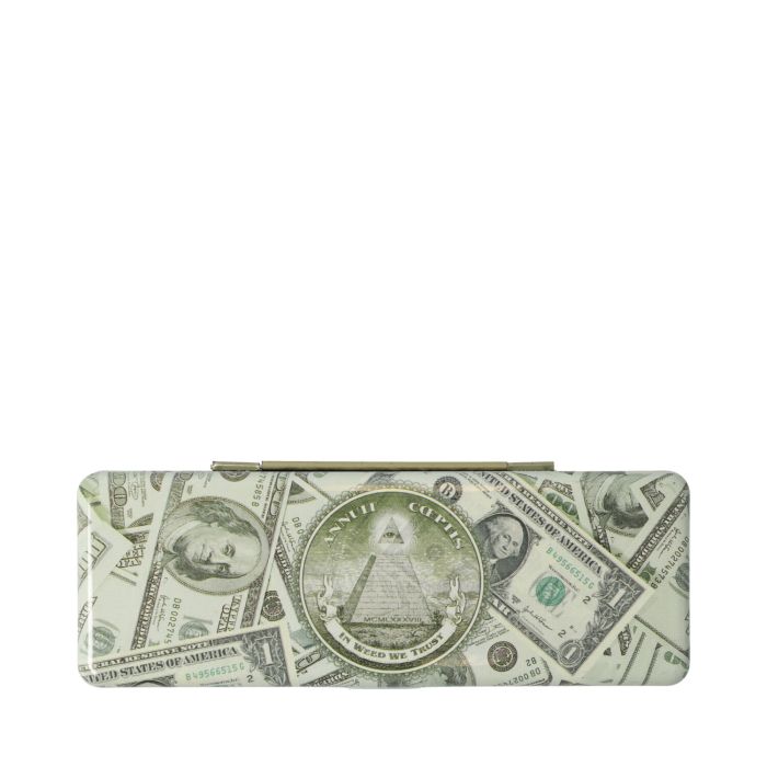 Make a statement with the Black Leaf Filter Case Dollars! This stylish flip-top tinplate box features a striking dollar print and an engraved Black Leaf logo. But this case is not only an eyecatcher – it keeps your filters and rolling papers perfectly in place. Thanks to the special silicone compartment, your active carbon filters are safely stored preventing them from falling out or getting crushed in your bag or pocket.