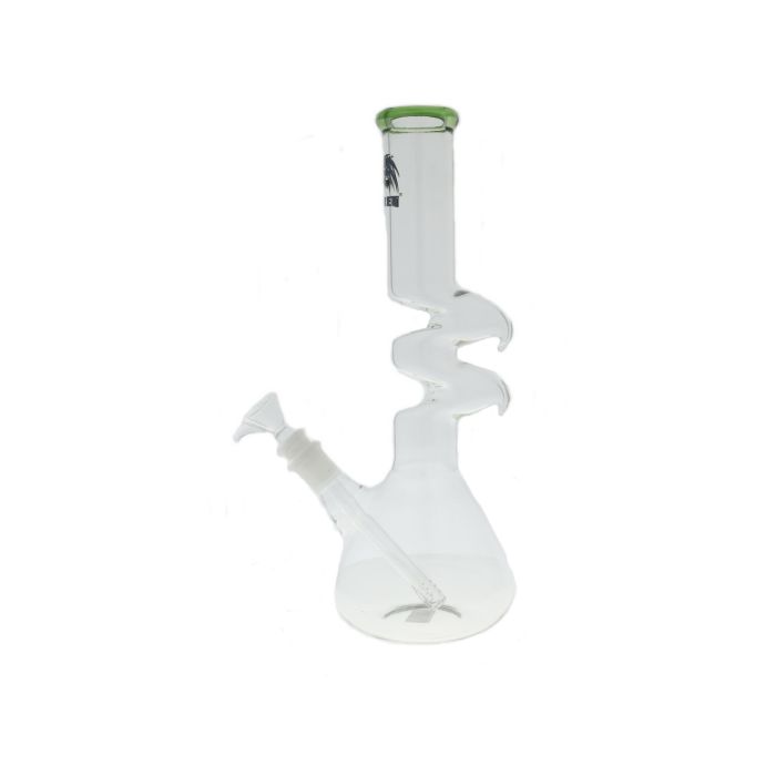 The BREIT ZigZag Green is a stylish glass bong with a unique zigzag design and striking green accents. Made of high-quality borosilicate glass with a 3mm wall thickness, this bong provides a firm and comfortable grip during use. The transparent glass combined with subtle green details gives it a modern and sophisticated look.