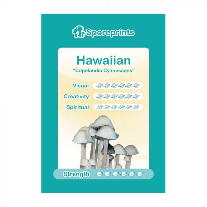 The Hawaiian Spore Print is a striking but extremely challenging strain for growers with expertise in cultivating Psilocybe cubensis. This variety is known for its impressive, distinctive caps and potent effects, but is highly sensitive to temperature fluctuations and susceptible to infections. Only growers with significant experience and meticulously controlled growing conditions can achieve success with the Hawaiian strain.