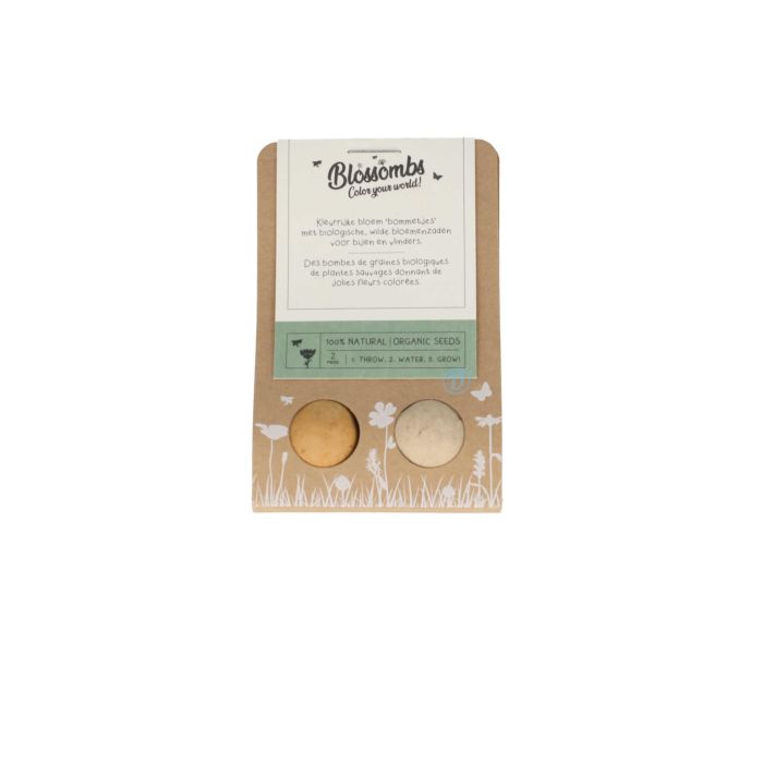 Laissez la nature s'épanouir avec ces Bombes de fleurs! Ces bombes de fleurs uniques sont fabriquées à partir d'argile naturelle, de graines de fleurs sauvages biologiques et de pigments naturels. Elles sont conçues pour attirer les abeilles et les papillons et contribuer à une meilleure biodiversité dans votre environnement. Le mélange de graines de fleurs contient une variété de fleurs qui fleurissent tout au long de la saison, pour que vous puissiez profiter de magnifiques fleurs toute l'année.