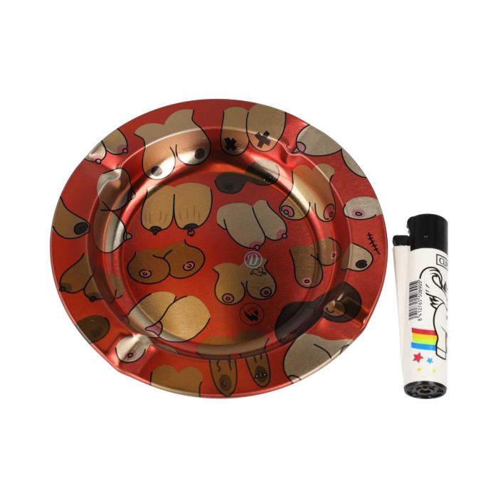 Le cendrier Fire Flow Ashtray Motif Tittie est un cendrier en métal pratique sur lequel différents titties dessinés sont représentés. Le cendrier est léger et ne prend pas trop de place. Comme il est en métal, il peut être facilement nettoyé !