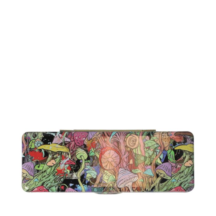 Bewaar je filters en vloeitjes in stijl met de Black Leaf Filter Case Mushrooms. Deze stevige flip-top box van tinplate is versierd met een psychedelisch getekend paddenstoelenbos, wat hem niet alleen praktisch, maar ook visueel uniek maakt. Dankzij het speciale siliconen compartiment blijven je actieve koolfilters netjes op hun plek en voorkom je dat ze uitvallen of geplet worden in je tas of jaszak. Ideaal voor onderweg en een must-have voor liefhebbers van bijzondere designs.