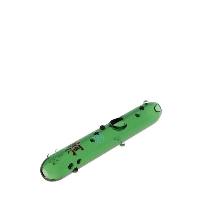 Gemaakt van groen borosilicaatglas, staat deze pijp garant voor duurzaamheid en weerstand tegen hoge temperaturen. De unieke toevoeging van glazen "balletjes" dient niet alleen als een esthetisch kenmerk, maar biedt ook extra grip en stabiliteit, wat resulteert in een veilige en comfortabele hantering.