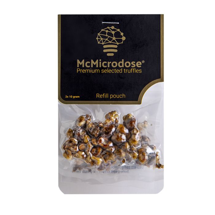 De truffels in de McMicrodose Refill Pouch worden ook wel sclerotia genoemd, een voedzame en geconcentreerde opslagvorm van myceliumdraden onder de grond. Onder ideale omstandigheden groeien deze sclerotia uit tot paddenstoelen, maar tot die tijd bevatten ze waardevolle voedingsstoffen en psilocybine, wat hen perfect maakt voor een nauwkeurige microdosing ervaring.